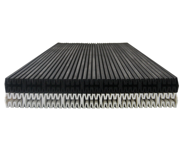 耐濕性:塑燒板基體材質(zhì)本身就有耐濕性能、再覆有疏水的樹脂膜,使其不但耐濕性能高,而且,能將含有酸堿水汽匯集成水流,加以清除。